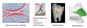 Bone, cartilage and tooth are tissues that make up the skeleton. They are essential to vital functions such as the growth of the organism, organ protection, movement and mastication. Our team studies the sane and pathological physiology of these tissues, focusing on cartilage and the dental pulp. Our approach consists in combining fundamental and translational research, around three main themes: